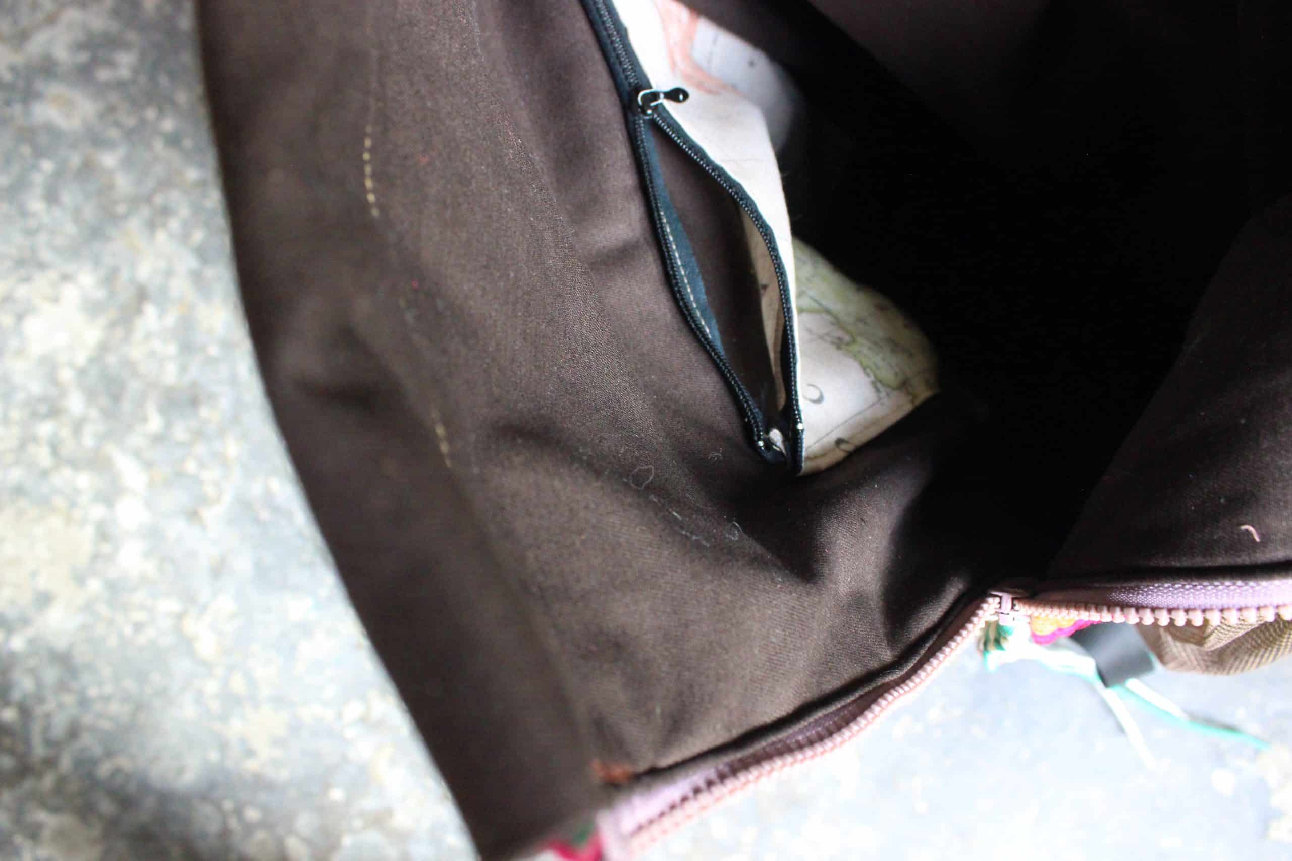 Fodera in cotone con tasca a fantasia “cartina geografica” e chiusura zip.