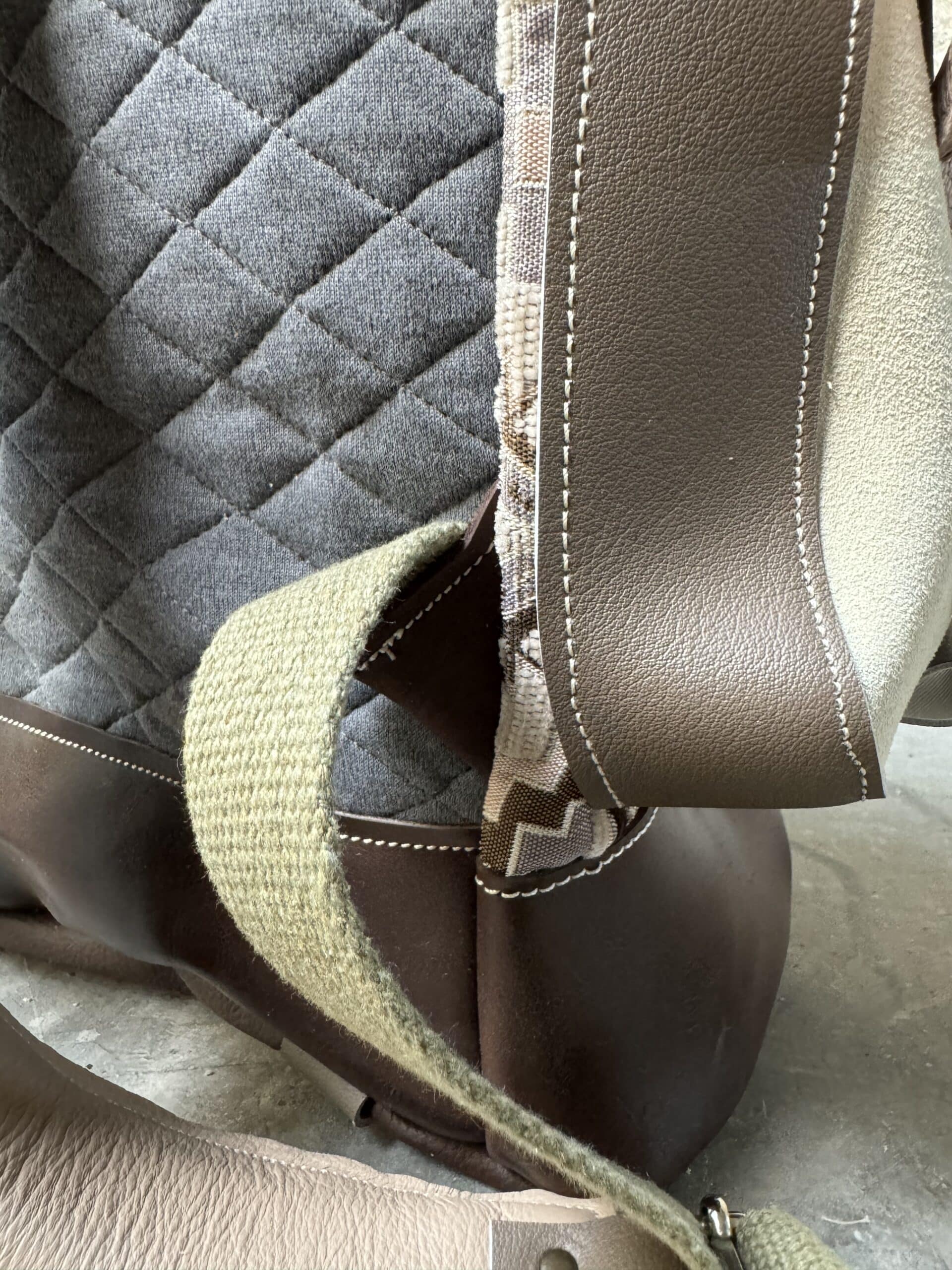 Schienale in cotone grigio trapuntato ed imbottito, taschina sul retro con chiusura zip.