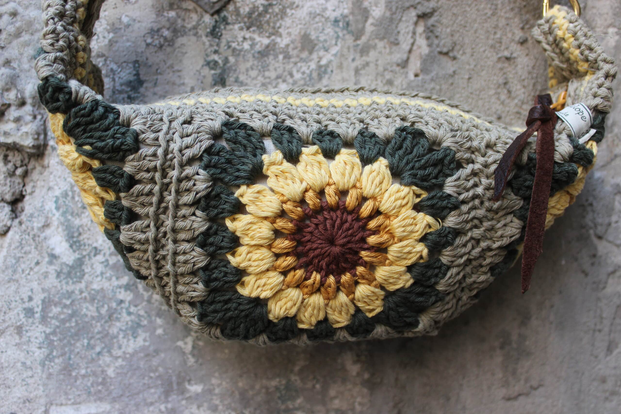 Marsupio realizzato a mano all’uncinetto in collaborazione con Agnese di @likepenelope.