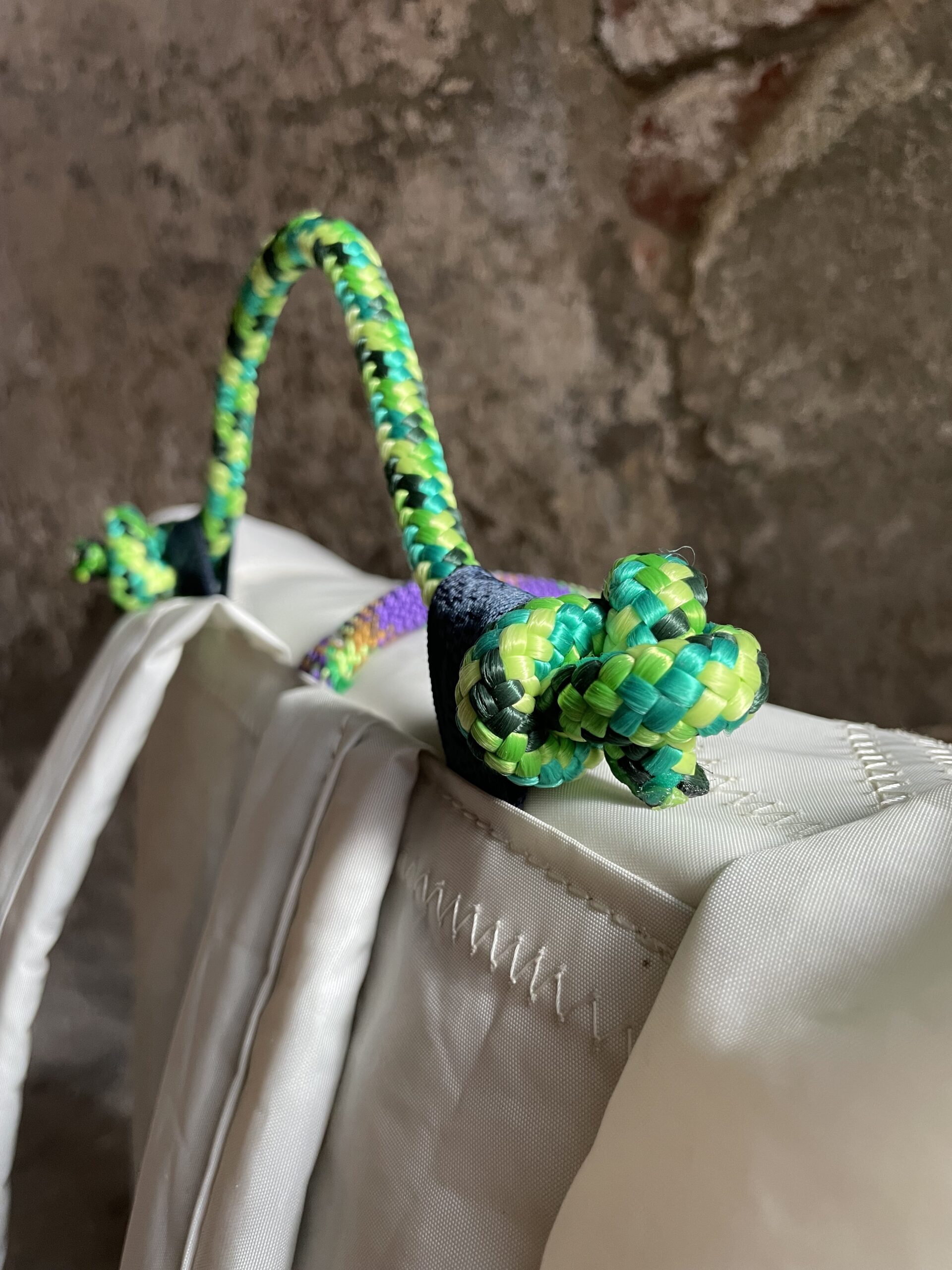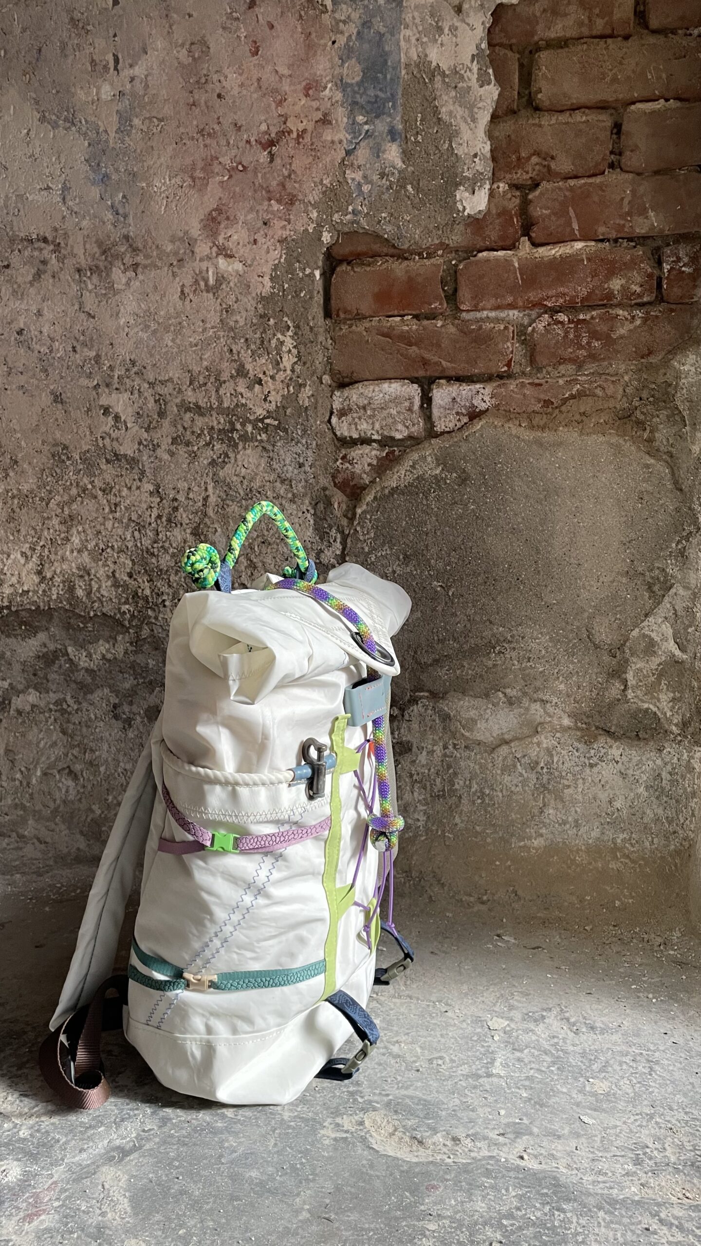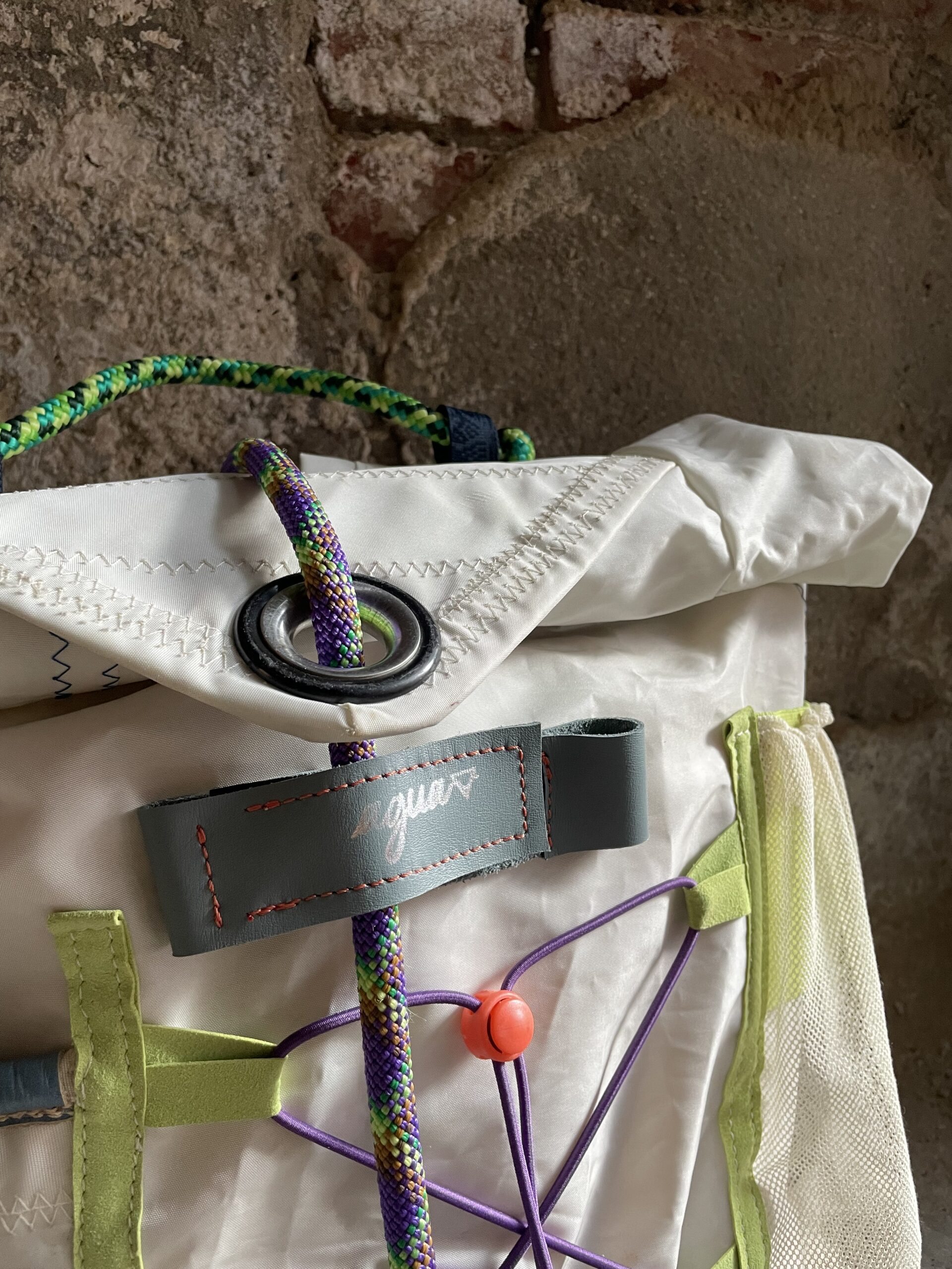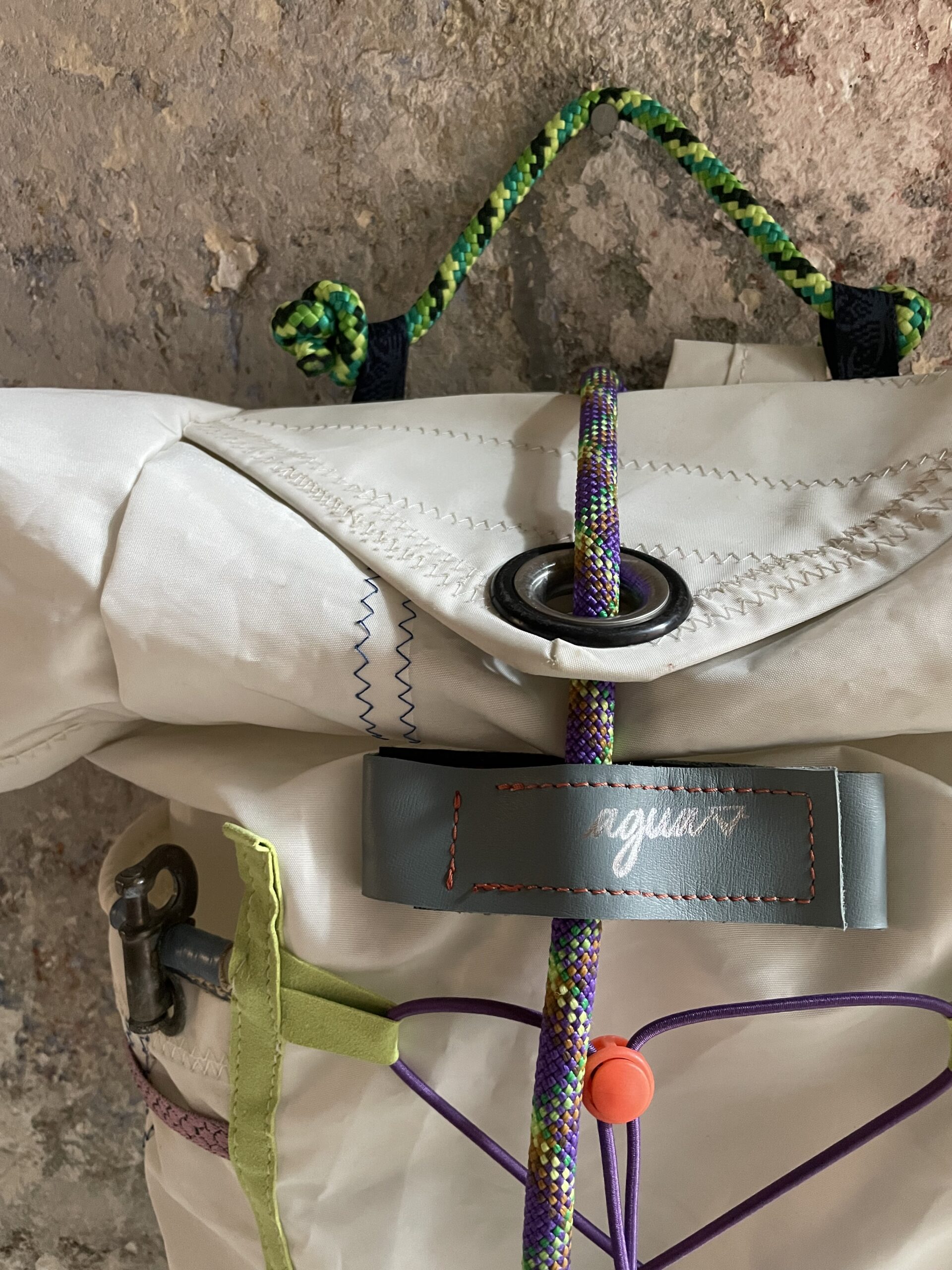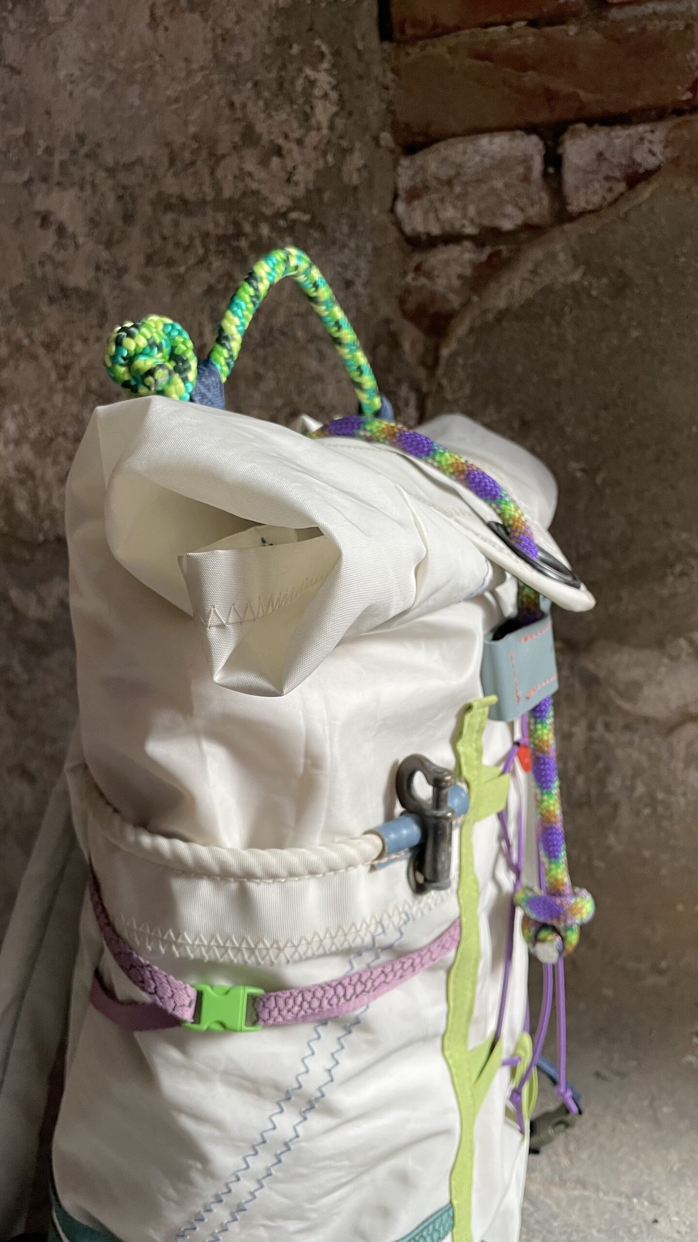 Zaino realizzato dal recupero di una Vela di una barca che ha navigato il mar mediterraneo.